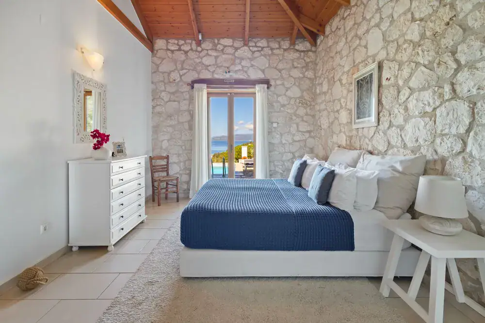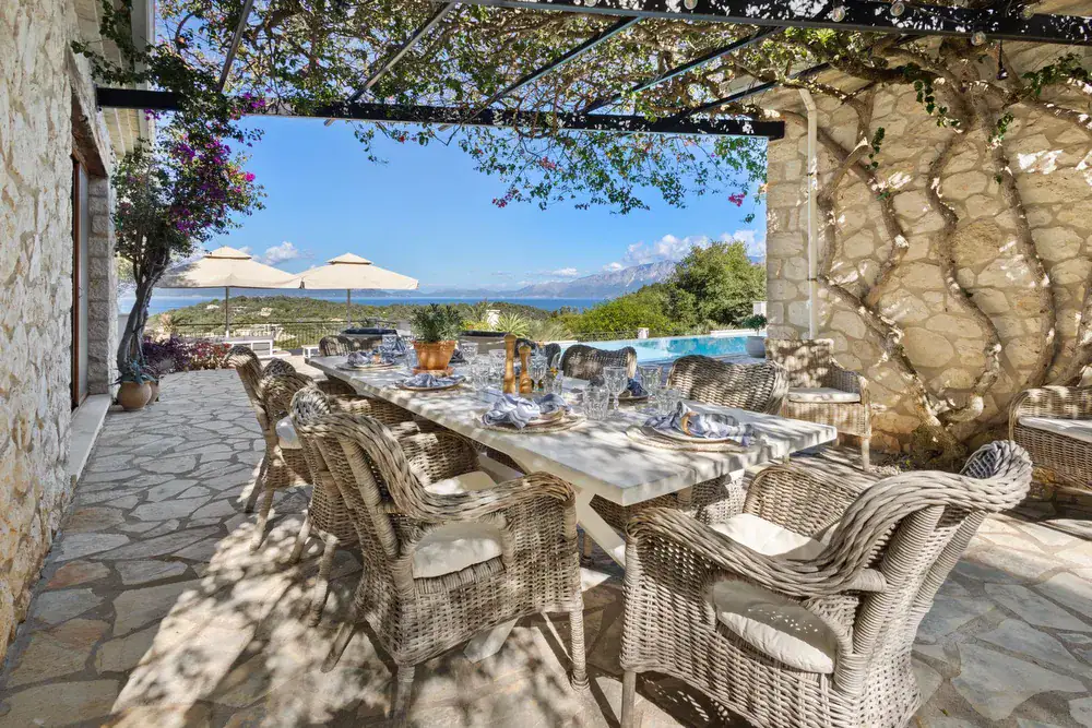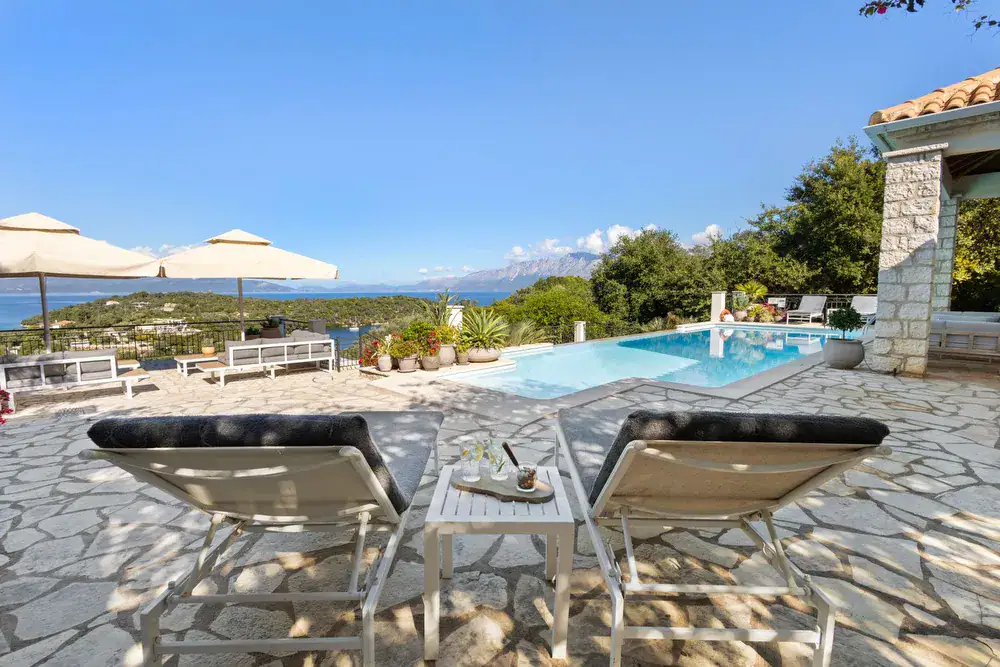 Villa Eden sits above Limni Bay in Vathi, Meganisi—a calm, sea-facing retreat designed for easy, indoor-outdoor living. Think big-sky views, stone terraces, an infinity pool, and a summer kitchen with a wood-fired pizza oven. Shops and tavernas are a short walk away; the beach is even closer.